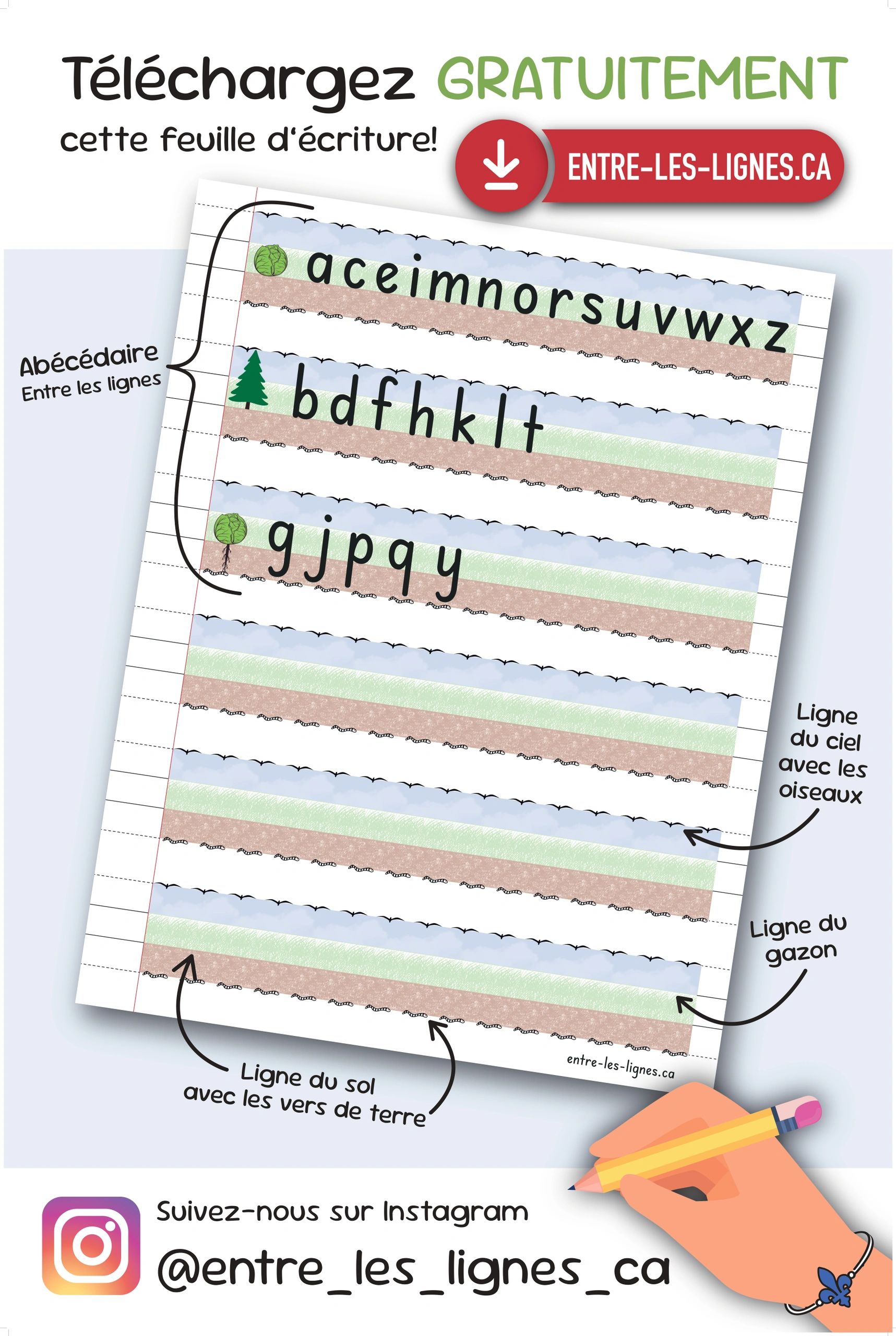 En se basant sur le concept Terre-herbe-ciel, Entre les lignes propose aux enfants d’âge préscolaire, aux élèves en début de scolarité ainsi qu’à ceux aux prises avec des troubles d’apprentissage une méthode assez simple pour bien positionner les lettres de l’alphabet.